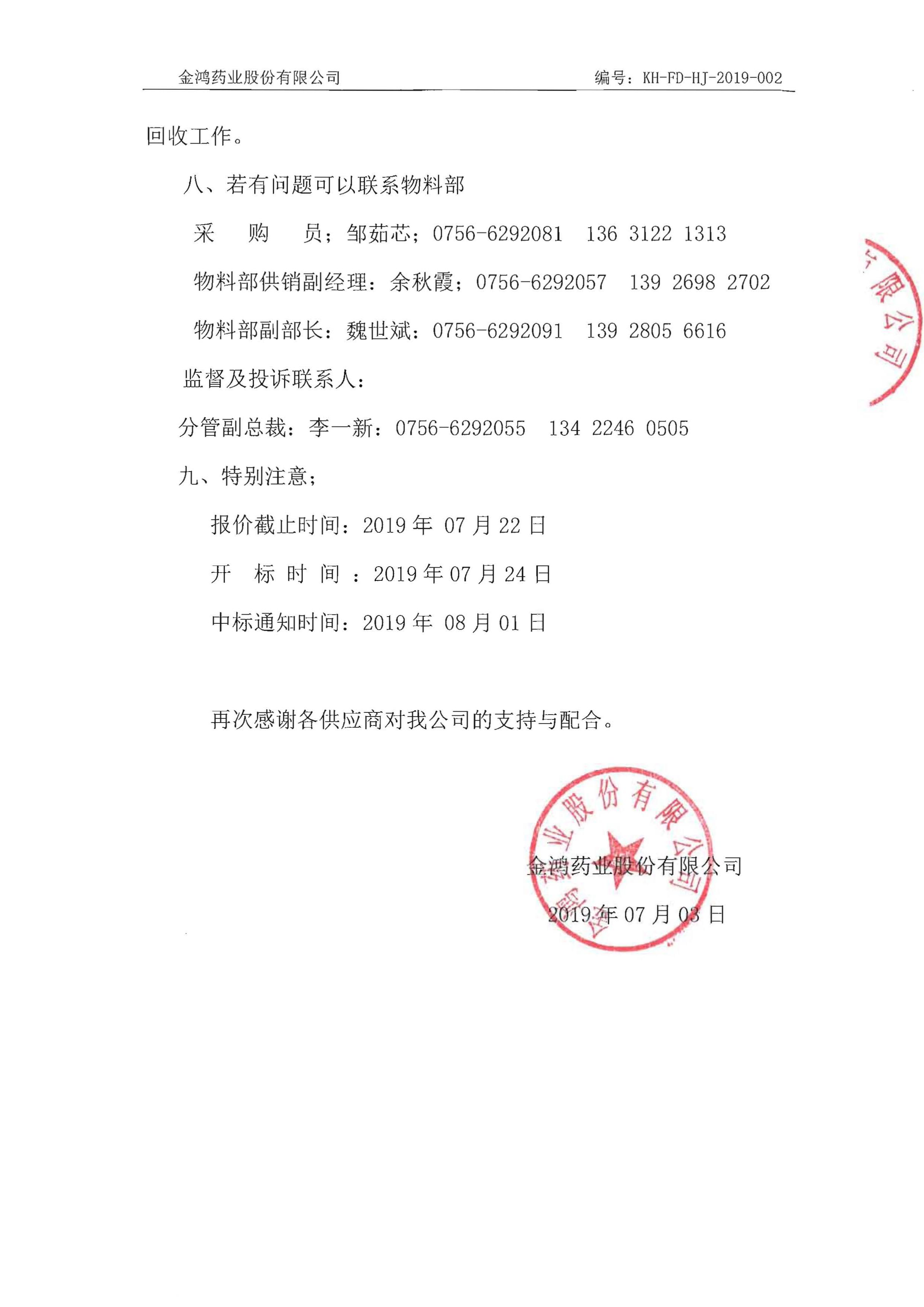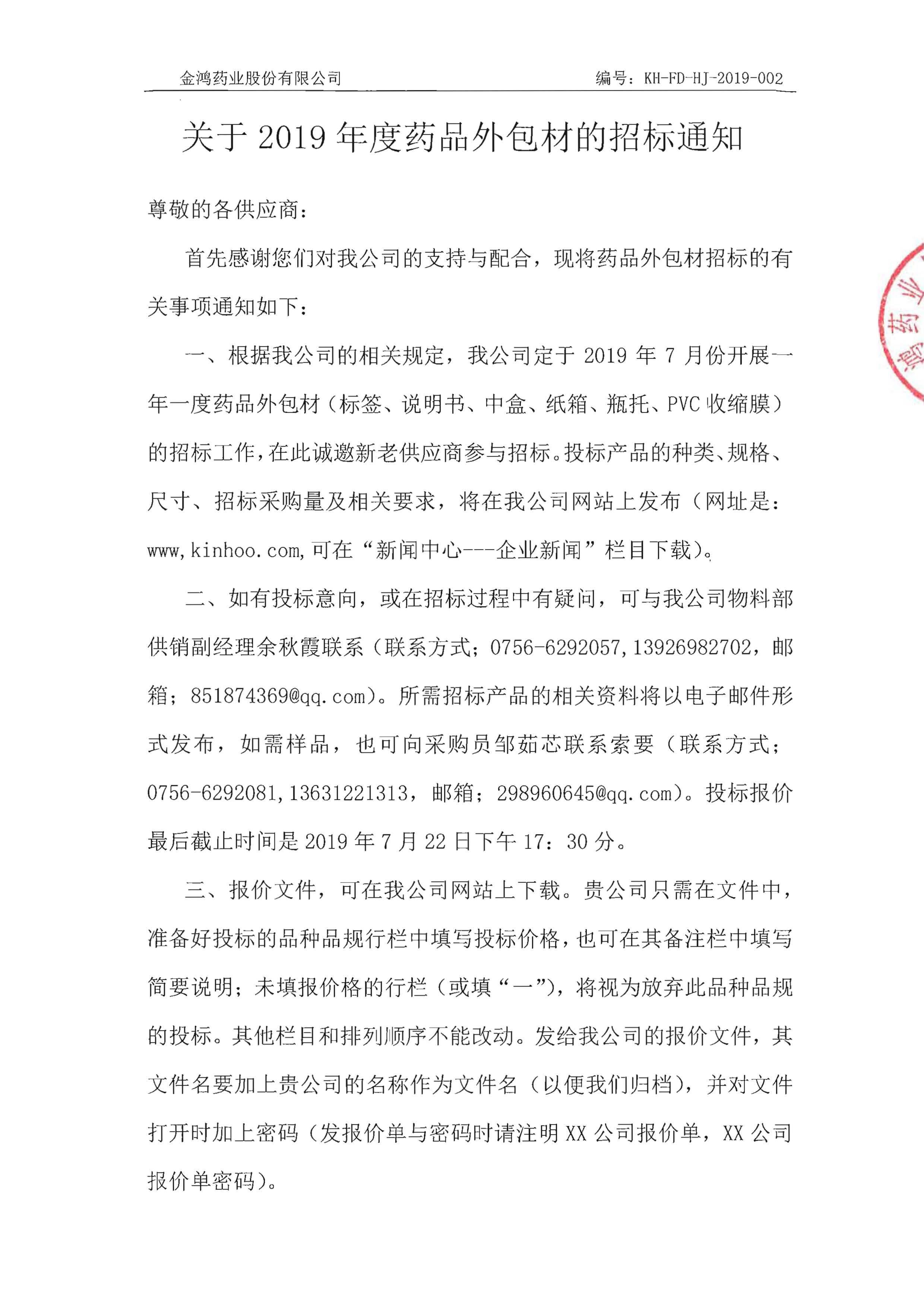關(guān)于2019年度藥品外包材的招標(biāo)通知